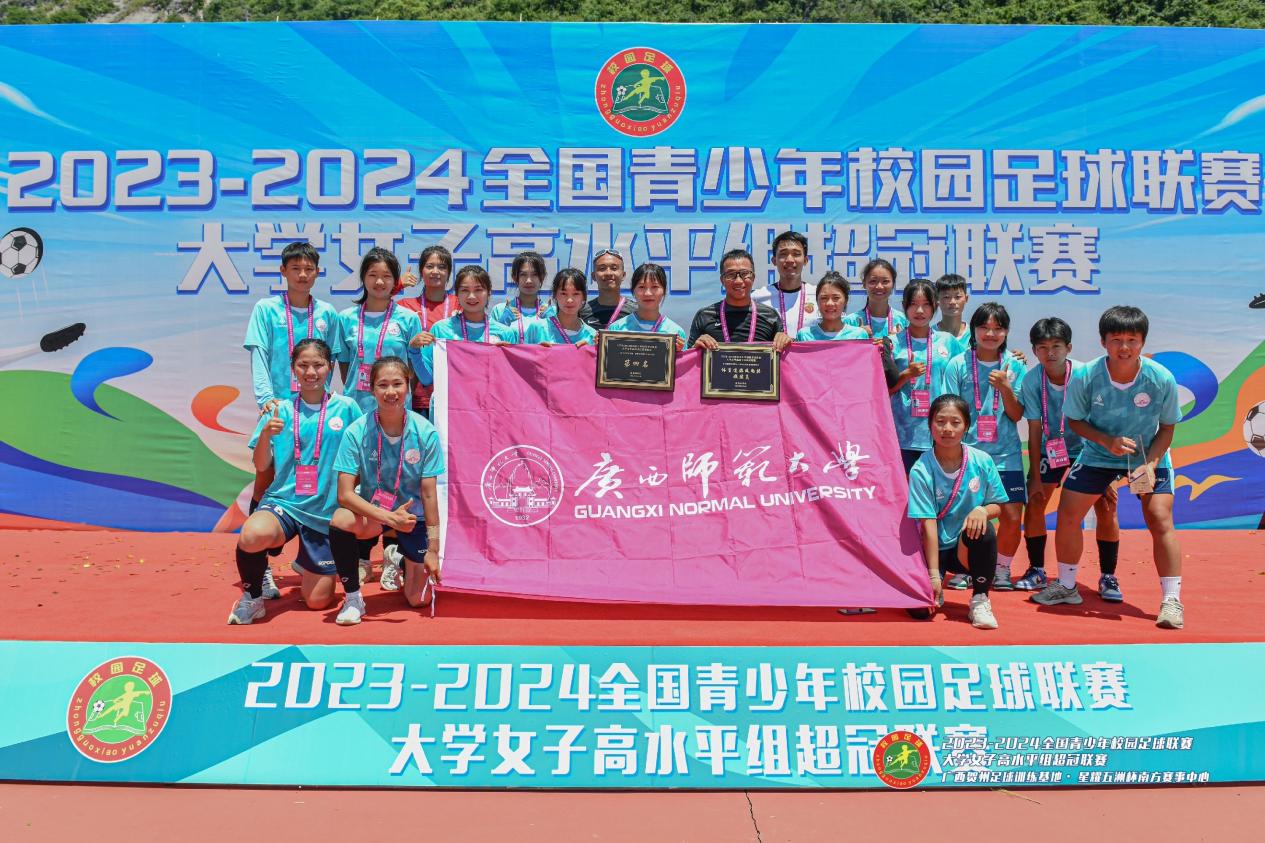 2024年7月26日至8月5日,2023-2024全国青少年足球联赛大学女子高水平组超冠联赛在广西贺州举行,广西师范大学女子足球队凭借场上队员扎实的技战术和顽强拼搏的作风荣获高水平组超冠联赛第四名,创造了广西高校历史最好成绩,黄永岳获得“体育道德风尚奖教练员”称号,杨静(2021级体育教育)获得“最佳射手”称号。
