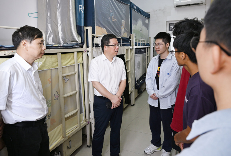 8月30日,校党委书记贺祖斌,校党委副书记旷永青,校党委常委、副校长黄文韬、林国庆带队分别赴三校区,深入各学院(部)、相关职能部门、学生宿舍、食堂等重点区域,实地检查新学期各项工作开展情况,督导检查安全生产等专项工作,并看望慰问返校学生和教职员工。