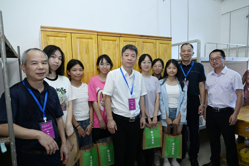 校长孙杰远、副书记旷永青、副校长李先贤一行为新生代表送“爱心成长包”