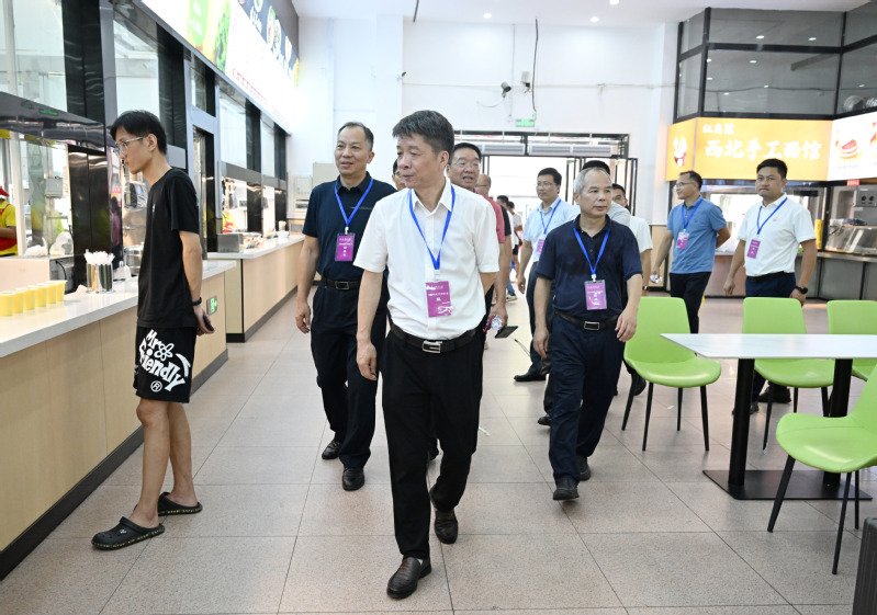校长孙杰远、副书记旷永青、副校长李先贤实地走访检查食堂等区域