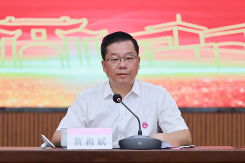 贺祖斌强调,全体教职员工要提高政治站位,坚定心有大我、至诚报国的理想信念;要提升境界品格,坚守言为士则、行为世范的道德情操;要恪守职责本位,涵养启智润心、因材施教的育人智慧;要丰富扎实学识,秉持勤学笃行、求是创新的躬耕态度;要涵育仁爱素养,满怀乐教爱生、甘于奉献的仁爱之心;厚植家国情怀,彰显胸怀天下、以文化人的弘道追求。希望广大教职工要永葆胸怀天下、以文化人的弘道追求,涵养家国天下的深厚情怀,教育引导广大学生把爱国情、强国志融入报国行的自觉奋斗中。作为师范高校,贺祖斌号召全体教职员工要坚守为党育人、为国育才初心使命,认真学习和大力弘扬教育家精神,牢固树立躬耕教坛、强国有我的志向和抱负,同心合力构筑高质量的教师教育体系,加快建设国内一流大学,为助力教育强国和教育强区建设做出新的更大贡献。