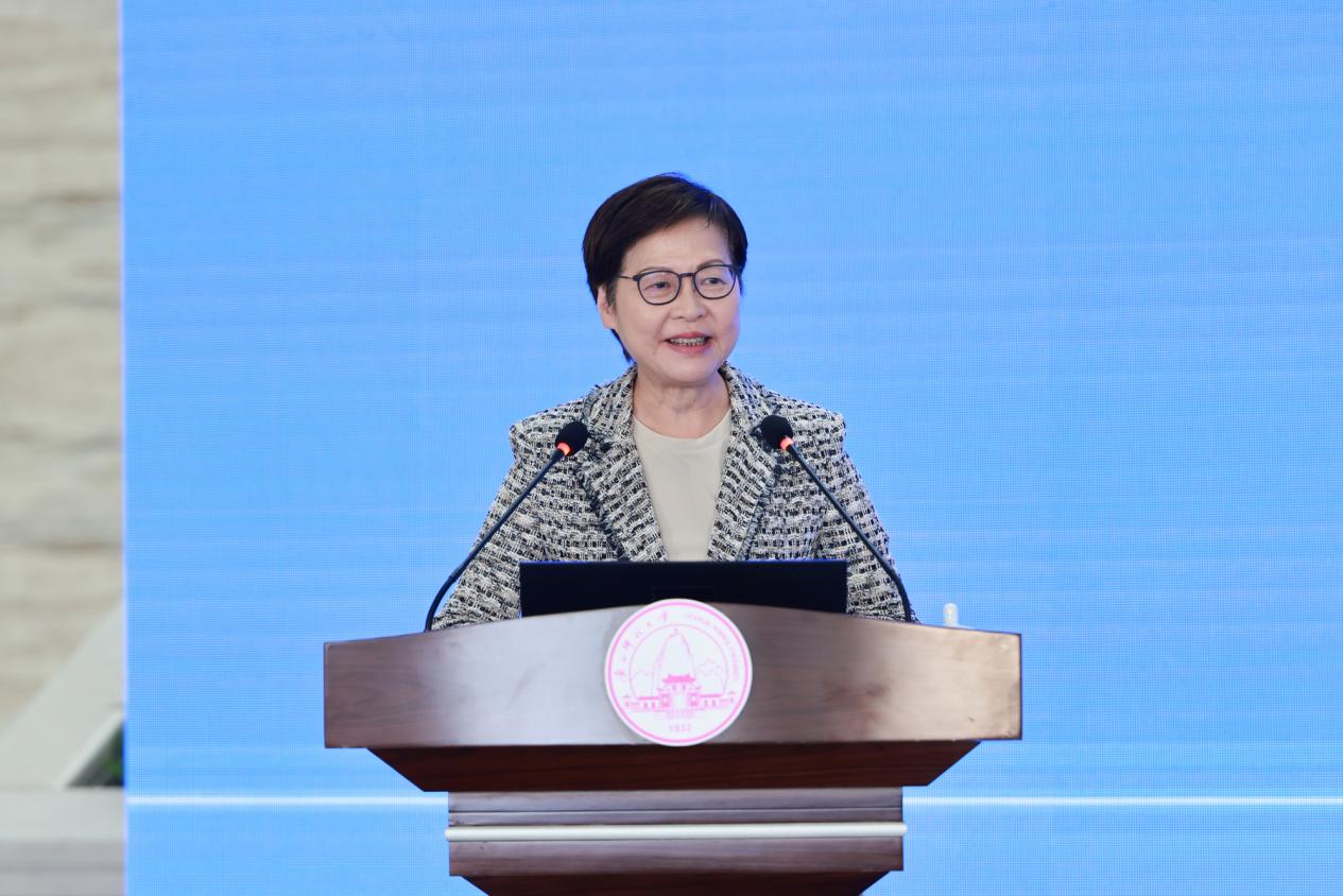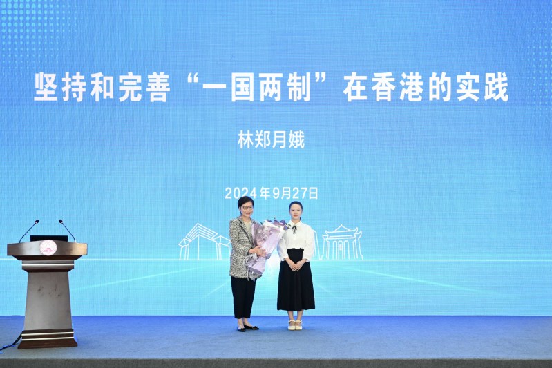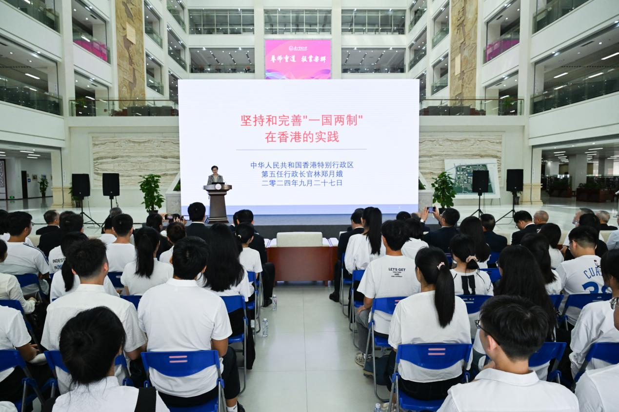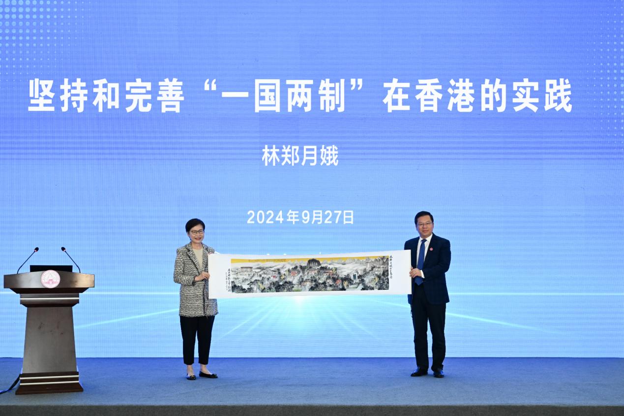 林郑月娥女士做题为“坚持和完善‘一国两制’在香港的实践”主旨演讲