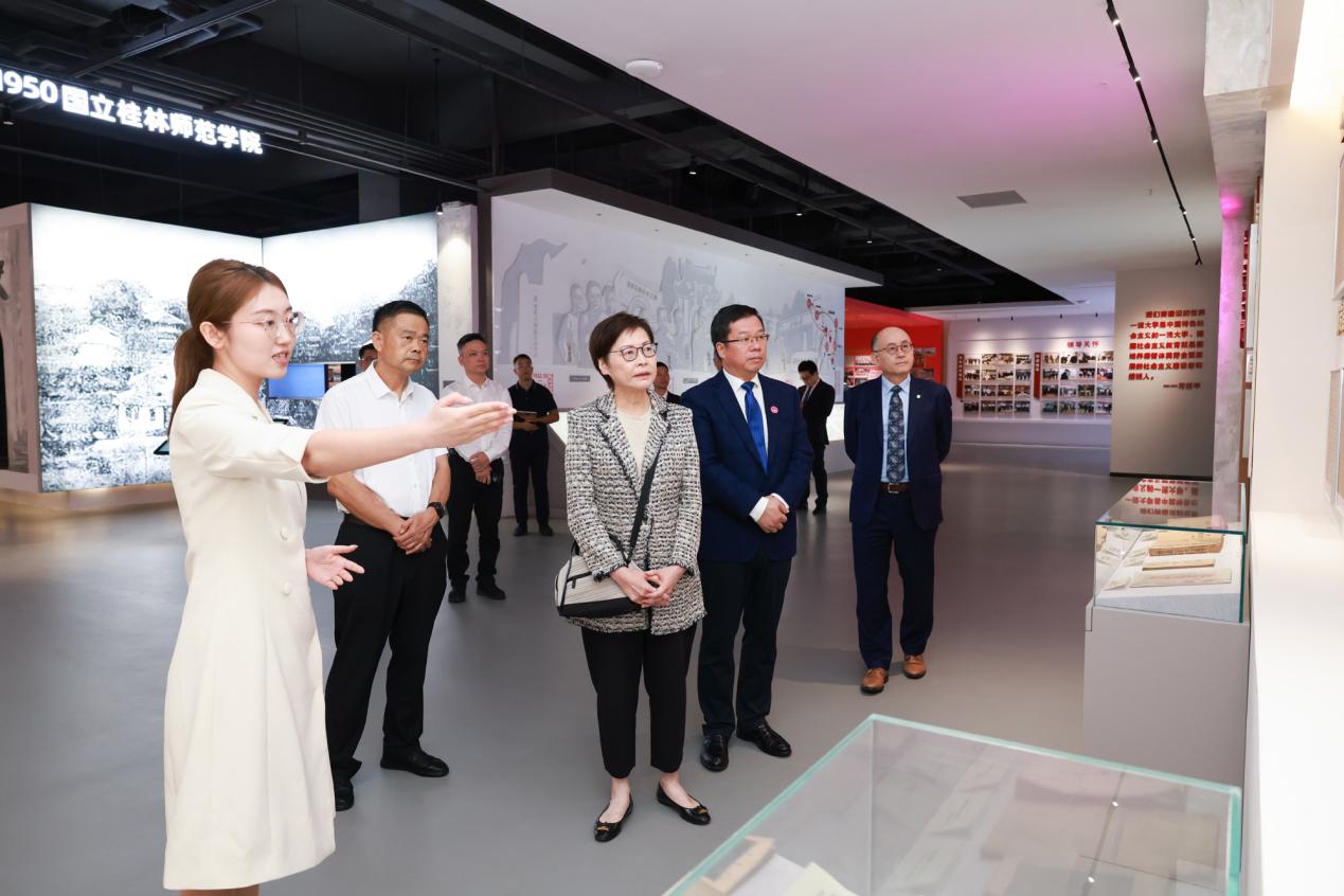来访期间,林郑月娥女士还在贺祖斌陪同下参观了广西师范大学校史馆和桂学博物馆,仔细了解广西师范大学建校92年来的发展历程与桂学研究脉络。