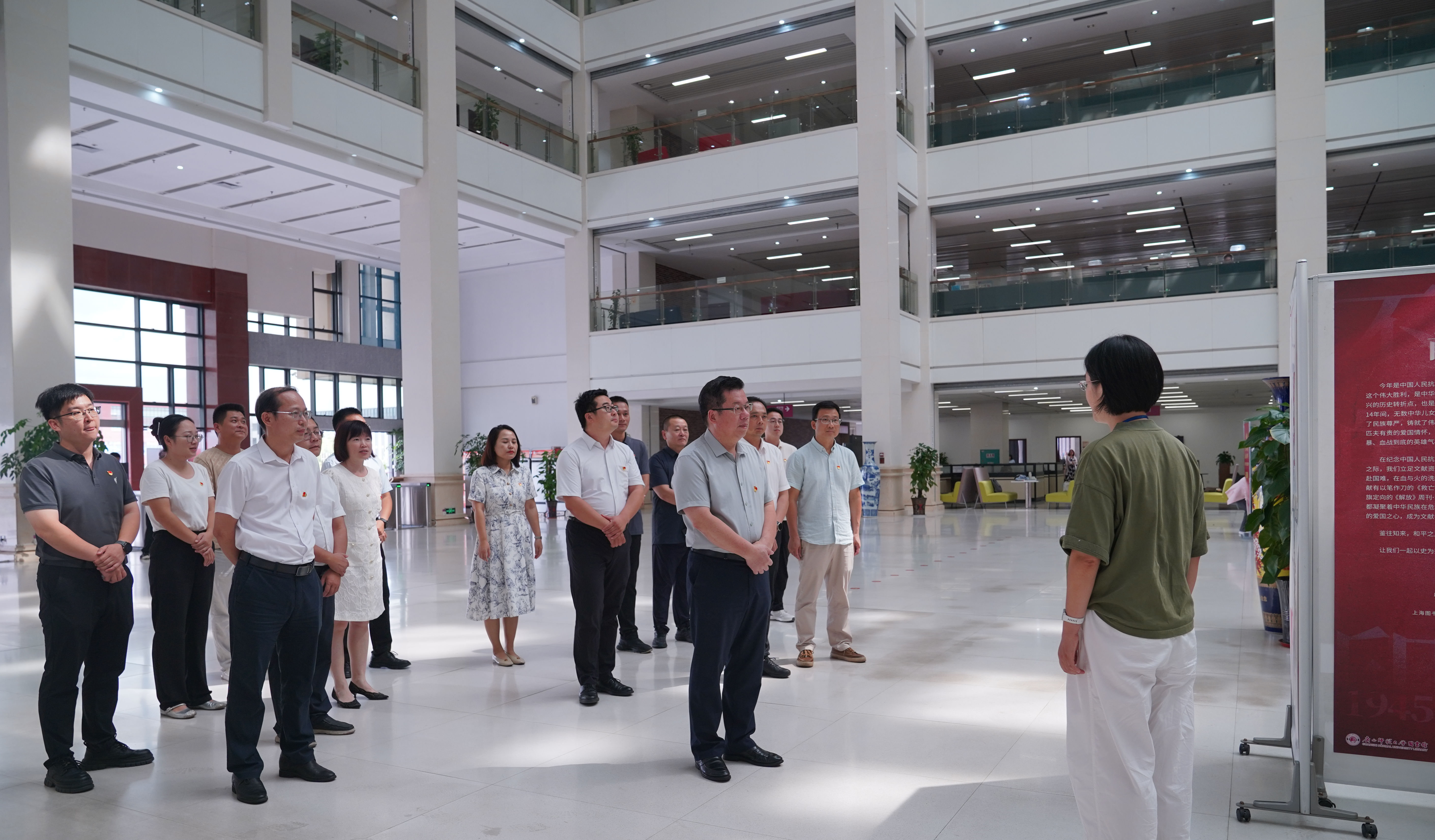 贺祖斌指出,中国人民抗日战争暨世界反法西斯战争的胜利是正义战胜邪恶、光明驱散黑暗的伟大胜利,这段历史是中华民族宝贵的精神财富。图书馆举办的专题书展,为全校师生深入学习抗战历史、感悟伟大抗战精神搭建了重要平台。他强调,图书馆应持续加强对桂林抗战史料的系统性收集与整理,同时要格外重视收集和整理本校师友相关研究专著,致力构建特色馆藏体系,将图书馆打造为守护地方城市记忆、传承学校学术文脉、服务立德树人根本任务的文化重地。