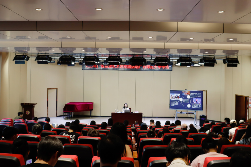 为持续推进学校美育浸润行动,弘扬中华美育精神,丰富校园文化,提高师生艺术修养,自治区教育厅组织开展2025年高雅艺术进校园系列活动。10月9日下午,广西2025年高雅艺术进校园活动广西师范大学专场在我校雁山校区音乐学院405多功能厅举行,80位学生现场参加了本次活动。