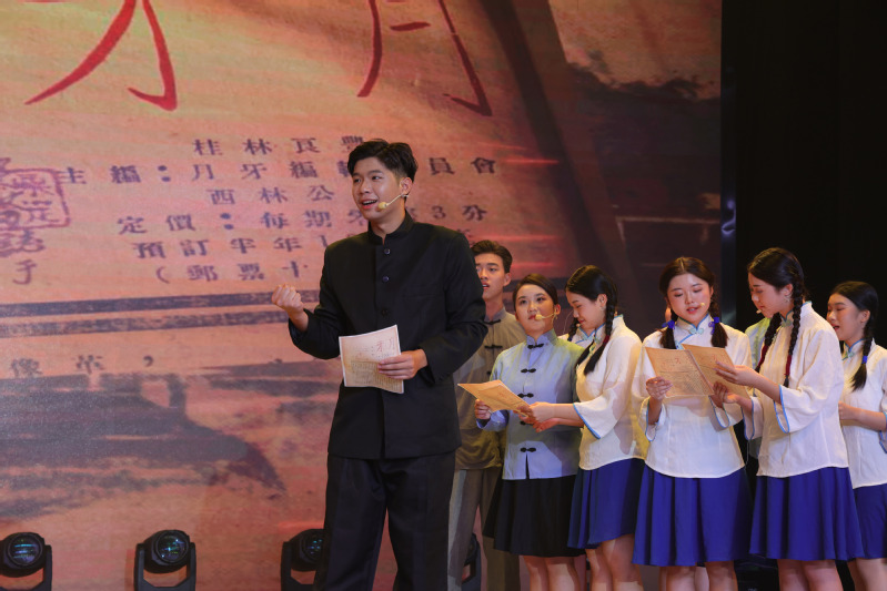 为热烈庆祝学校93周年华诞,更好传承红色基因,赓续师范根脉,增进我校师生对学校发展历程的了解,展现广西师大人披荆斩棘、顽强拼搏的奋斗精神,2025年10月12日晚,我校原创红色校史剧《育才赞歌》展演活动在广西师范大学雁山校区音乐学院三楼综合厅举行,这是我校连续5年展演该剧目。相关单位负责人、新入职教职工以及各学院(部)新生代表参与本次现场观看活动。