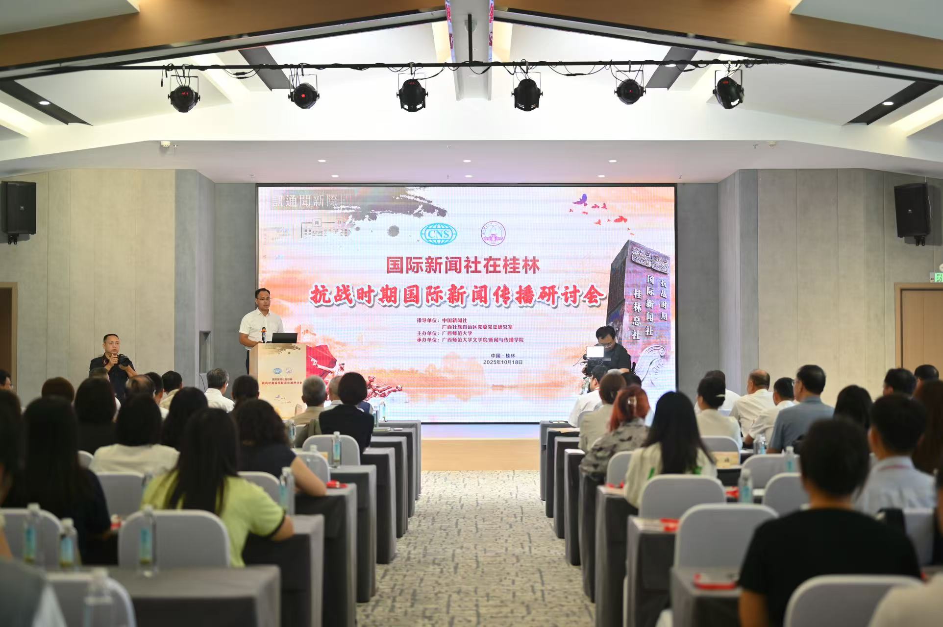 10月18日,国际新闻社在桂林——抗战时期国际新闻传播研讨会在桂林举办。本次研讨会由中国新闻社和广西壮族自治区党委党史研究室指导,广西师范大学主办,广西师范大学文学院/新闻与传播学院承办,来自全国各地的领导嘉宾、专家学者齐聚一堂,回顾抗战时期国际新闻传播的“桂林实践”,探讨桂林抗战文化的传播创新和当下价值转化。