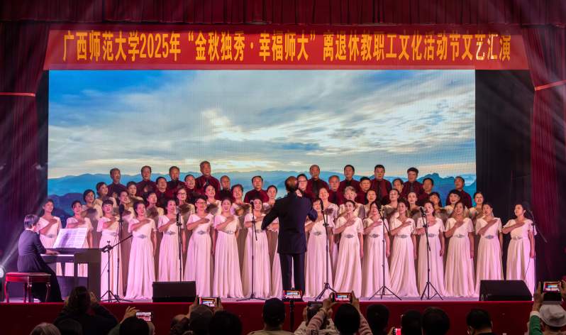 霜叶流丹,秋韵正浓。10月24日下午,我校王城校区国学堂内座无虚席,掌声如潮,2025年“金秋独秀·幸福师大”离退休教职工文艺汇演在此倾情上演。适逢新中国成立76周年、我校建校93周年,近七百名离退休教职工以一场凝聚匠心与深情的演出,展现了新时代长者不忘初心、续写荣光的精神风貌。学校党委常委、副校长林国庆与各单位相关负责人莅临现场,与老同志们共度美好时光。