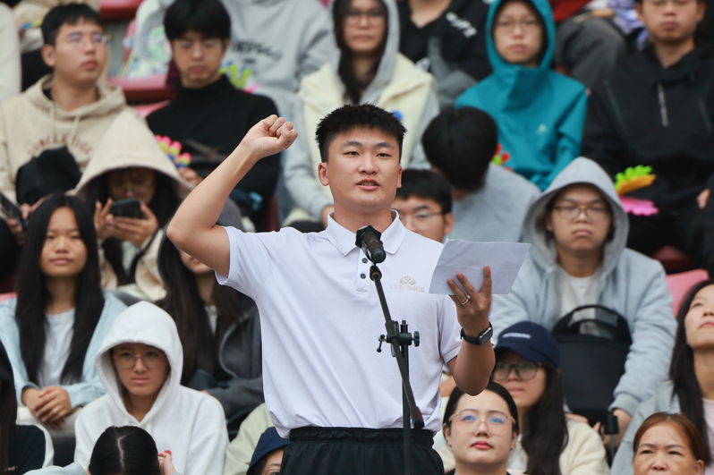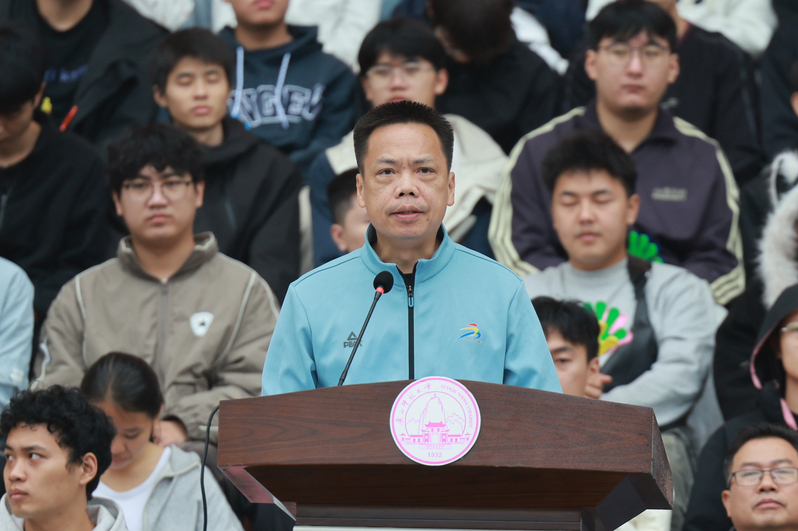 校党委副书记黄文韬致开幕辞。黄文韬强调,一年一度的田径运动会是全校的体育盛事,是对广大师生体质、运动竞技水平的一次大检验。希望全体运动员秉持“更快、更高、更强、更团结”的奥林匹克精神,赛出水平、赛出风格,全面展示蓬勃向上的精神风貌。希望全体裁判员坚持原则、维护公平,做到公正裁判、热情服务。希望全体师生员工以此为契机,坚持体教融合,以体育人,用健康的体魄、阳光的心态和奋斗者的姿态,抢抓机遇、团结拼搏、勇攀高峰,为加快实现国内一流大学的奋斗目标作出新的更大贡献。