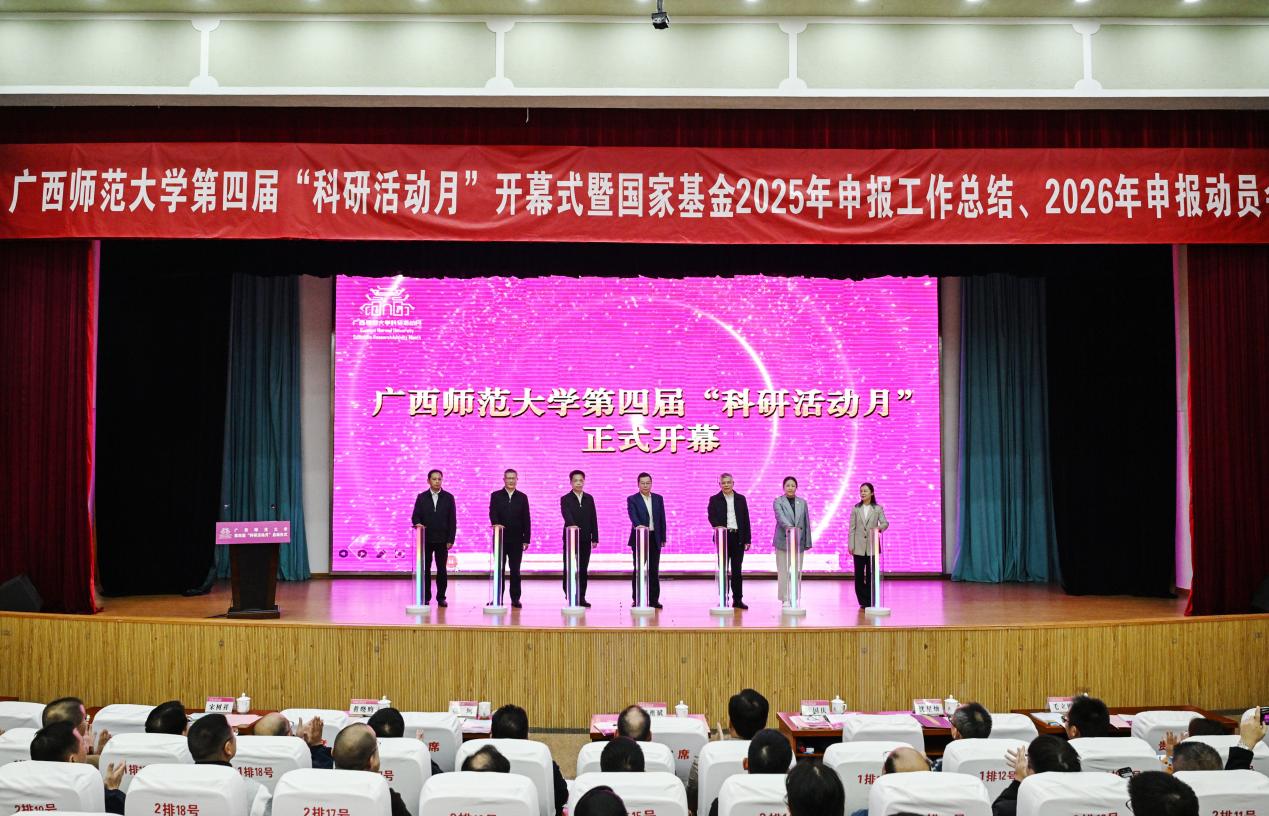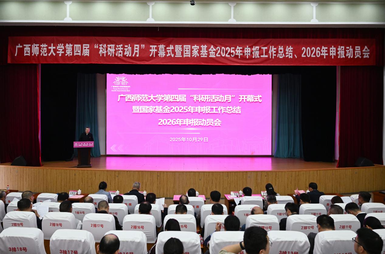 10月29日下午,我校第四届“科研活动月”开幕式暨国家基金2025年申报工作总结、2026年申报动员会在育才校区田家炳教育书院一楼报告厅举办。校党委书记贺祖斌,校党委副书记莫坷,副校长林国庆、黄晓昀、宋树祥、沈星灿,校党委常委、统战部部长毛立刚出席活动。活动由宋树祥主持。