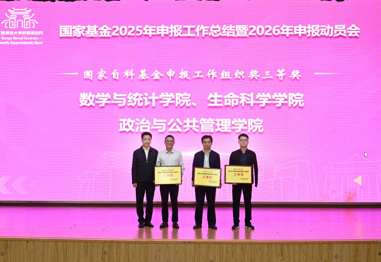 颁奖环节,贺祖斌、莫坷、林国庆、毛立刚分别为我校2025年国家基金申报工作组织奖一、二、三等奖的获奖单位,以及荣获我校2025年优秀科研秘书的先进代表颁发荣誉证书。
