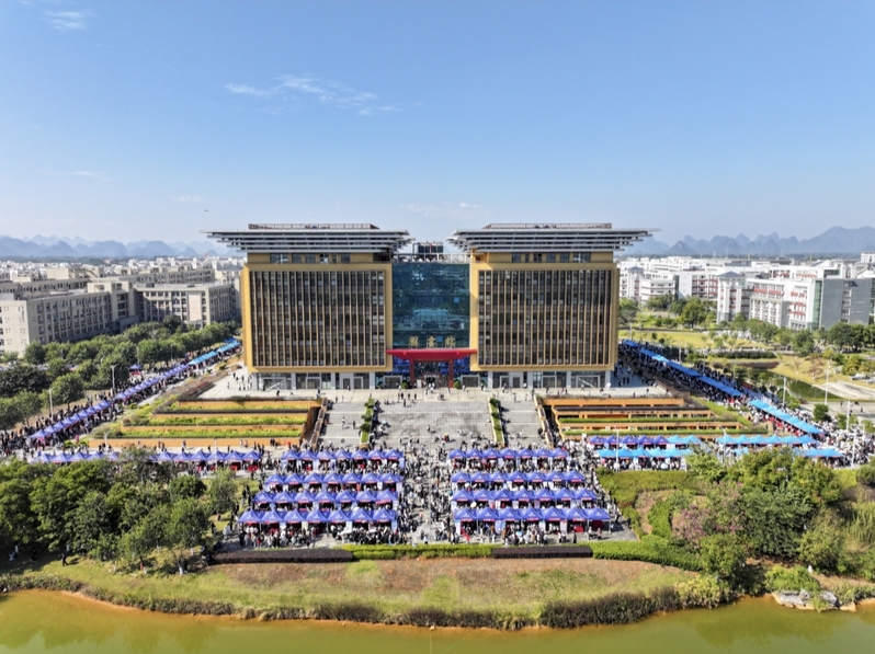 为贯彻落实党中央、国务院“稳就业”“保就业”决策部署,抢抓毕业生求职关键期,为师范类毕业生提供广阔的就业平台,11月22日,由自治区教育厅、自治区人社厅、自治区卫健委、自治区国资委主办,自治区高校毕业生就业创业指导中心协办,广西师范大学承办的广西2026届师范类毕业生就业双选会(桂林专场)暨教育部直属师范大学2026届广西籍公费师范毕业生就业双选会在雁山校区图书馆成功举办。自治区教育厅二级巡视员、高校学生处处长汪维、自治区教育厅高校学生处副处长吴桂彬现场指导工作,校党委常委、副校长沈星灿深入招聘展位,与用人单位负责人细致交流人才需求情况,并亲切询问毕业生求职进展,为他们答疑鼓劲。学工部(处)、研工部主要负责人以及各学院(部)党政主要负责人、分管学生工作的党委副书记、分管教学副院长、毕业班辅导员、学工部(处)、研工部就业工作人员均到场参会。