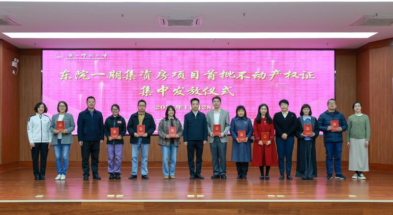 11月28日下午,学校东院一期集资房项目首批不动产权证集中发放仪式在育才校区国教楼2号楼201报告厅举行。校党委常委、副校长,育才校区教职工住宅建设领导小组组长林国庆出席仪式并讲话。国资处、财务处、基建处、校工会主要负责人与教职工购房户代表参加。