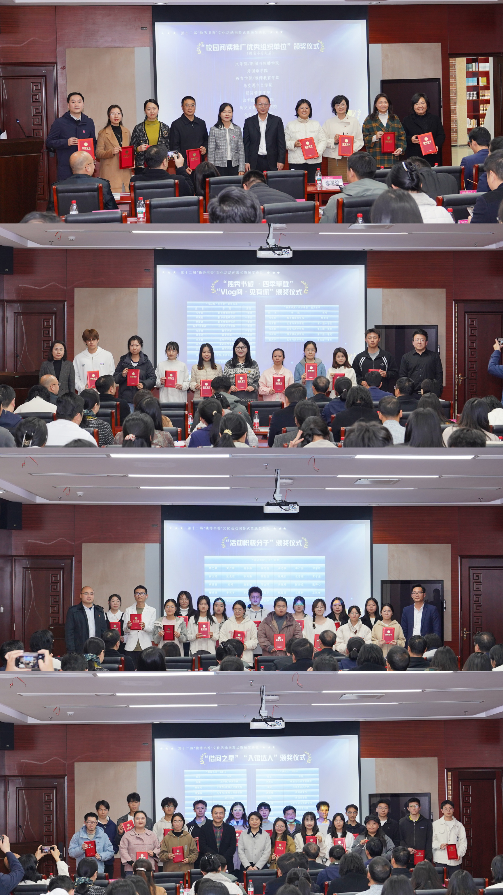 闭幕式上对年度“校园阅读推广优秀组织单位”“入馆达人”“借阅之星”等先进集体与个人进行了表彰。展演环节精彩纷呈,非遗川剧变脸表演、《可爱的中国》朗诵、优秀寻书Vlog展播等,生动展现了阅读与传统文化的魅力。