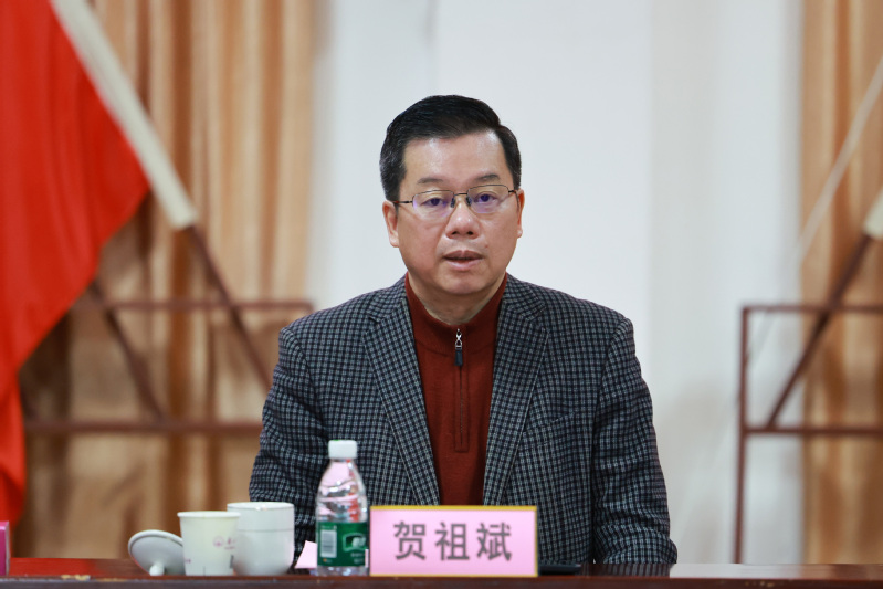 会上,贺祖斌代表学校党委向长期以来关心和支持学校推进乡村振兴工作的资源县领导表示崇高敬意和衷心感谢。他就学校进一步助力资源县全面做好乡村振兴工作提出了三点要求。一是要提高政治站位,深刻把握 2025 年 “五年过渡期” 收官年的战略要求,将党中央乡村振兴政策转化为实际成效;二是要坚持问题导向,聚焦资源县山区耕地有限、产业规模小等痛点,提供靶向解决方案;三是要强化关键举措,通过 “组织引领压实责任、教育赋能筑牢根基、科技兴农推动升级、文化服务激发活力”,深化校地协作,助力资源县提升内生发展动力。他指出,学校帮扶资源县已走过 13 年,累计投入近 4000 万元、培训基层人才 6400 余人次,未来将持续贡献 “师大智慧”。