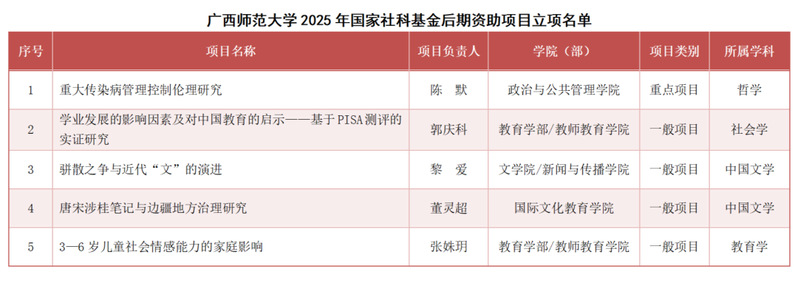 12月23日,全国哲学社会科学工作办公室正式公布了2025年国家社会科学基金后期资助暨优秀博士学位论文出版、优秀学术著作再版项目和中华学术外译项目立项名单。我校共获批8项资助,其中包括5项后期资助项目(重点项目1项、一般项目4项)和3项中华学术外译项目(重点项目1项、一般项目2项)。