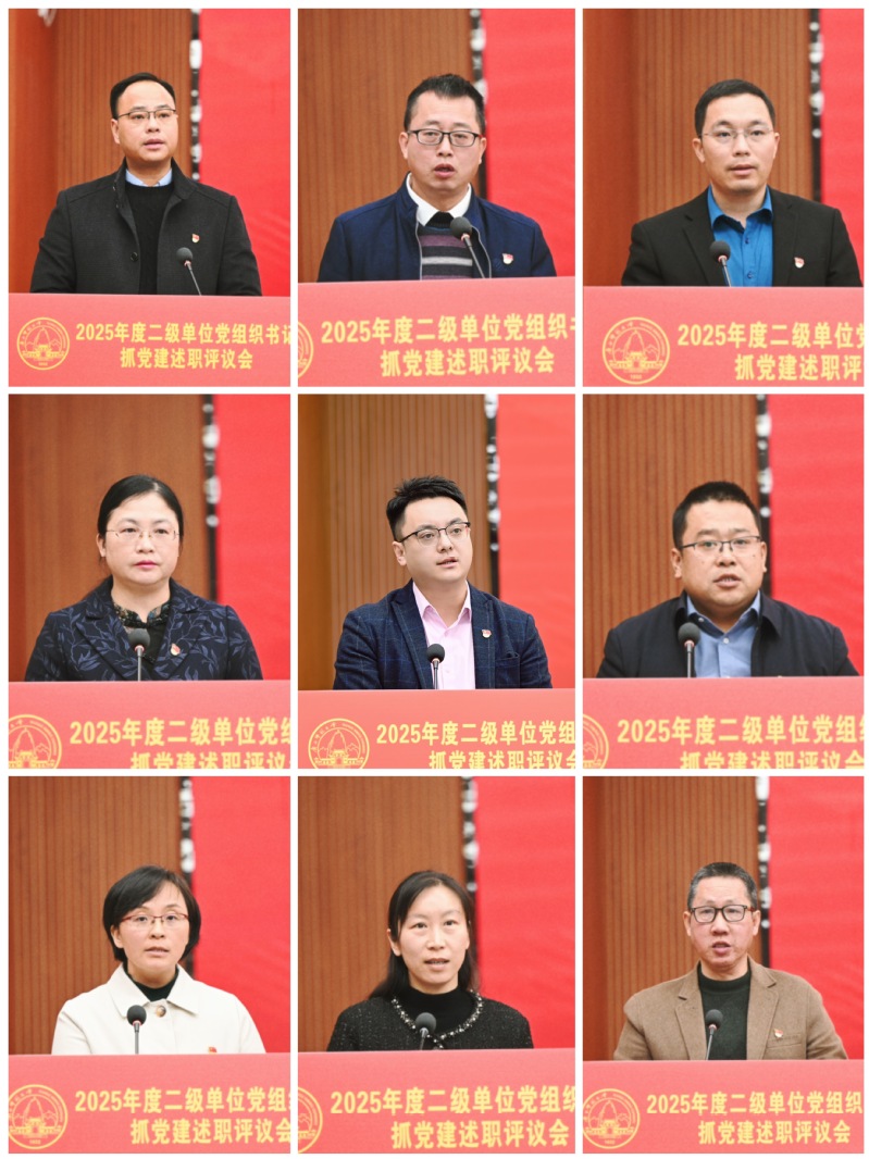 会上,9位二级单位党组织书记紧紧围绕2025年度履行第一责任人职责、抓基层党建的硬招实招、存在的问题与不足以及下一步工作思路进行了现场述职。其余19位二级单位党组织书记进行了书面述职。