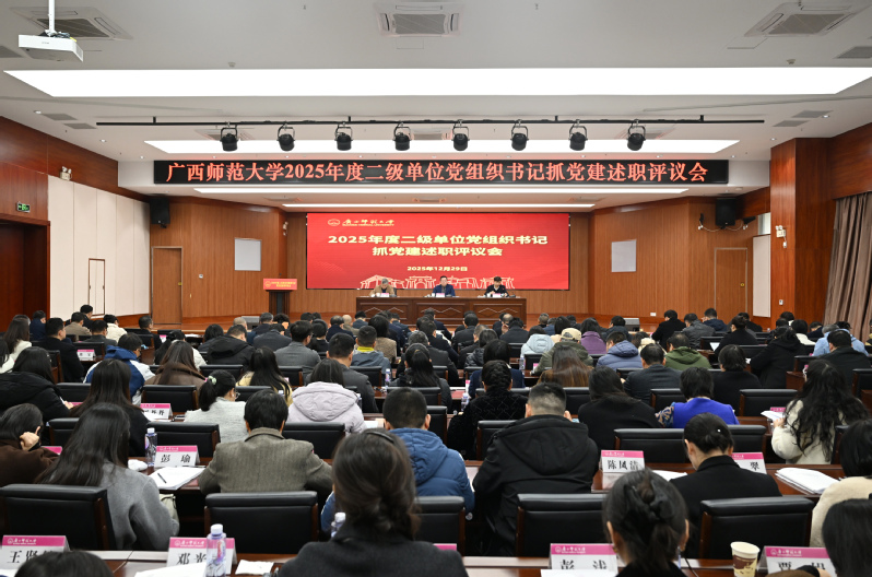 12月29日上午,学校在育才校区召开2025年度二级单位党组织书记抓党建工作述职评议会。校党委书记贺祖斌,校党委副书记、自治区纪委监委驻学校纪检监察组组长莫坷出席会议,会议由校党委副书记黄文韬主持。贺祖斌书记对现场述职的二级单位党组织书记抓党建工作情况进行点评,并对进一步抓好全校基层党建工作作了部署安排。