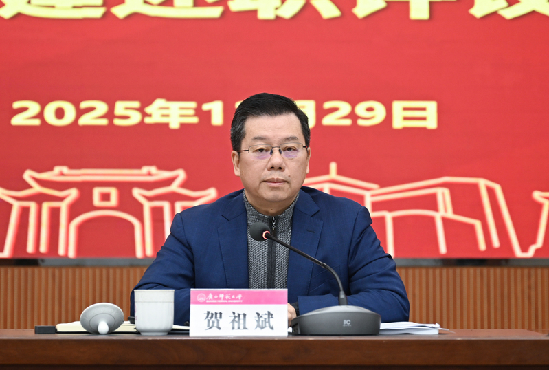 贺祖斌强调,2026年是“十五五”规划的开局之年,也是学校向着国内一流大学目标迈进的关键之年。全校上下必须把思想和行动统一到党中央和自治区党委的决策部署上来。要坚持政治统领,抢抓“AI赋能千行百业”时代机遇,依托人工智能赋能思政教育试点优势,在学深悟透做实党的创新理论上展现更高站位。要聚焦“一融双高”,结合“十五五”规划编制,深化“一党委一品牌、一支部一特色”建设,引导全校基层党组织更加突出服务“国之大者”,在以高质量党建引领高质量发展上实现更强担当。要夯实基层基础,持续巩固“五基三化”建设成果,深化党建示范创建,锻造过硬先锋队伍,在增强党组织政治功能和组织功能上汇聚更大合力。要勇于自我革命,扎实做好巡视整改“后半篇文章”,筑牢网络意识形态安全防线,提质增效“清廉师大”建设,在推动党风廉政建设和作风建设常态化长效化上巩固更好态势。