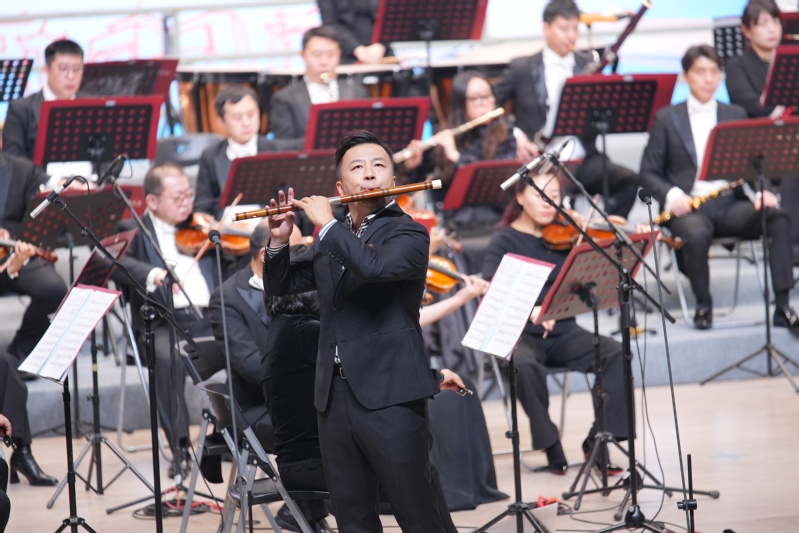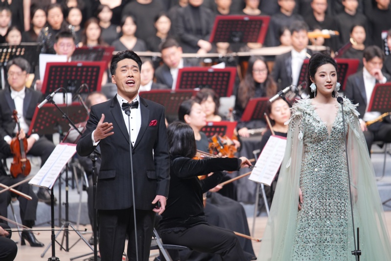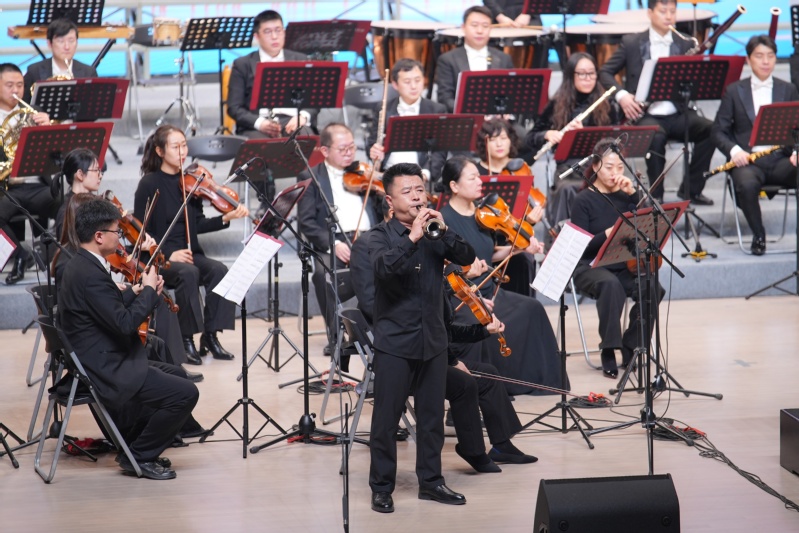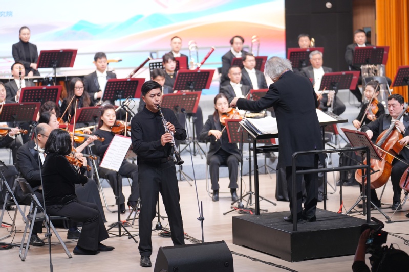 本次活动由广西师范大学主办,校美育中心、音乐学院、中华民族共同体研究院联合承办,特邀中国歌剧舞剧院交响乐团联袂演出。音乐会由我校客座教授、著名指挥家、中国音乐学院特聘教授许知俊执棒,特别邀请我校特聘教授、著名男高音歌唱家王铁刚倾情出演,学校音乐学院多位青年教师亦同台献艺,与中国歌剧舞剧院音乐家们默契协作。曲目编排精心,既有《春节序曲》、《一枝花》、《云裳诉》等扎根中华优秀传统文化、展现民族音乐魅力的经典之作;也有《帕米尔之音协奏曲》、《新疆之春》、《鸿雁主题随想曲》等描绘祖国辽阔疆域、反映多民族风情音乐的精彩篇章;更有《沁园春·雪》、《怀念战友》、《不忘初心》、《我爱你中国》等抒写爱国情怀、唱响时代主旋律的深情演绎,实现了中华美学与交响形式的深度融合。