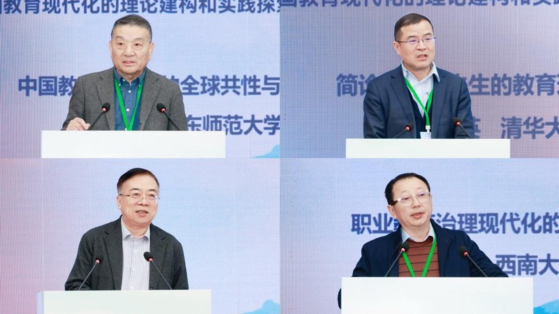 主旨报告环节,华东师范大学丁钢教授探讨了“中国教育现代化的全球共性与自主特征”,清华大学石中英教授阐释了“顾明远先生的教育现代化思想”,首都师范大学田慧生教授就“中国教育现代化若干问题”展开分析,西南大学朱德全教授论述了“职业教育治理现代化的中国道路”,华东师范大学李政涛教授以“共生教育与第四自然”为题拓展了教育现代化研究的新视野,广西师范大学孙杰远教授阐述了“中国教育现代化的临界与超越”。杭州师范大学王鉴教授、华中师范大学郭元祥教授、华东师范大学徐国庆教授、首都师范大学高书国教授、华东师范大学黄书光教授等,分别从中国教育现代化的“实践路径”“语言之途”“产教融合”“‘十五五’目标构想”“历史选择”等角度做了专题报告。北京师范大学余清臣教授、广西师范大学王彦教授、华东师范大学程亮教授、中央民族大学袁梅教授分别担任主旨报告环节主持人。