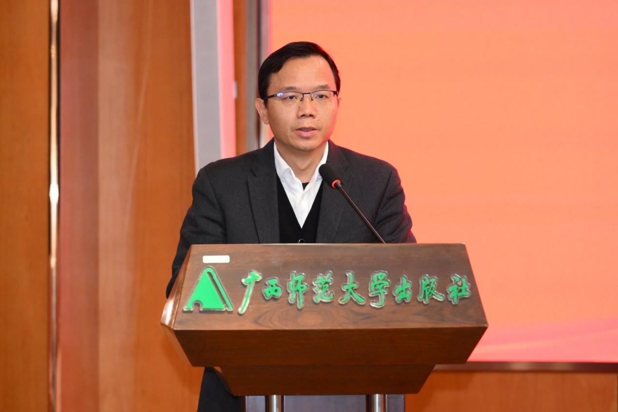 1月11日上午,2026年广西师范大学出版编审委员会会议暨集团公司出版计划论证会在集团公司总部大楼举行。校党委书记、校出版编审委员会主任委员贺祖斌,副校长黄晓娟,校党委常委、副校长宋树祥,校党委常委、副校长李先贤以及其他校出版编审委员会委员出席会议。会议由校党委副书记黄文韬主持。