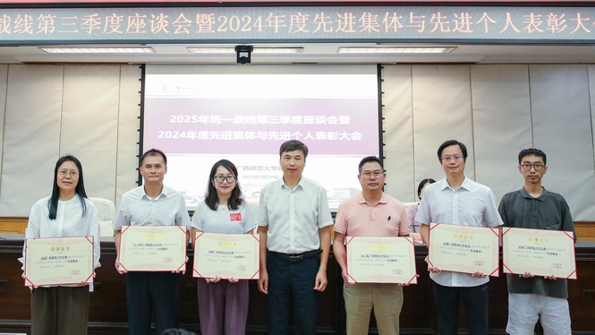 黄晓娟宣读了《关于表彰广西师范大学2024年度统一战线工作先进集体与先进个人的决定》。座谈会上,与会代表围绕学校2025年发展与改革研讨会主题,结合各党派团体的工作实际,就强化学科建设、人才培养、社会服务、内部治理等关键议题展开深入交流。大家一致表示,将充分发挥各自党派和团体优势,结合专业特长,不断加强自身建设,提升参政议政能力,努力在学校“十四五”圆满收官与“十五五”规划开局中展现新担当、实现新作为。
