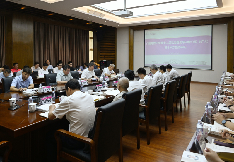 9月30日,学校第十二届党委理论学习中心组(扩大)第十六次集体学习会在我校雁山校区起文楼第四会议室召开,会议专题学习习近平总书记在纪念中国人民抗日战争暨世界反法西斯战争胜利80周年大会上的重要讲话精神、习近平总书记关于党的历史的重要论述、关于巡视工作的重要论述和《习近平谈治国理政》第五卷。校党委书记贺祖斌主持会议并讲话,校党委副书记、校长孙杰远作专题领学。