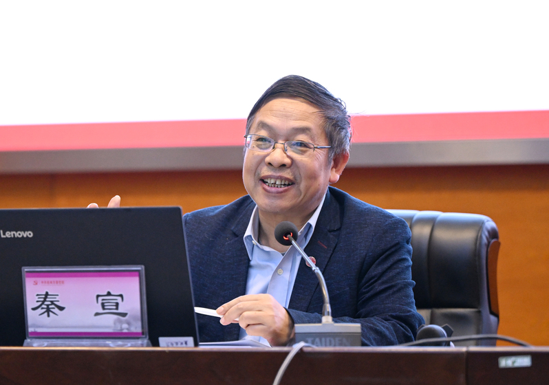 秦宣作题为《接续推进中国式现代化的行动纲领——党的二十届四中全会精神解读》的专题报告
