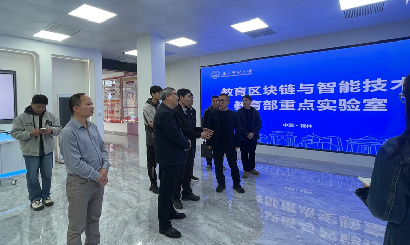 调研期间,自治区发改委创新和高科技发展处处长李川川一行参观教育区块链与智能技术教育部重点实验室成果展厅。