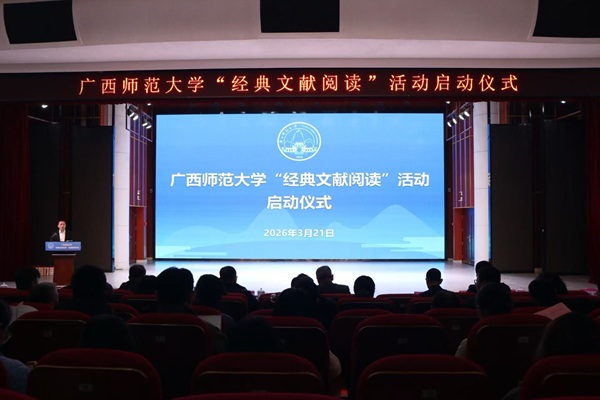 3月21日上午,广西师范大学“经典文献阅读”活动在雁山校区正式启动。自治区党委宣传部相关负责同志,广西师范大学领导、相关职能部门负责人、各二级学院负责人和师生代表共400余人参加了启动仪式。