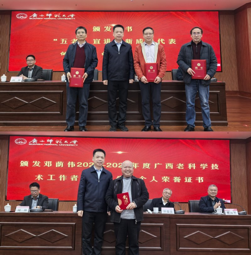 会上,林国庆为学校“五老”宣讲团新成员颁发聘书,为荣获“2024-2025 年度广西老科协技术工作者协会奖”的邓荫伟老师颁发了荣誉证书。校关工委常务副主任钟瑞添、离退休工作处主要负责人分别就 2025 年学校关工委工作、离退休工作作全面总结,并对 2026 年重点工作进行详细部署。美术学院、实验幼儿园主要负责人立足工作实际,作经验交流发言,分享特色做法与实践成效。